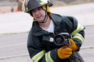 We make our racers work and for this challenge, participants learned what it takes to be part of the Minneapolis Fire Department. Both teammates geared up in full firefighter attire, which is quite a heavy outfit. Then one teammate made their way up the Training Tower while the other had to drag a fire hose 50 feet and spray water to hit a target.