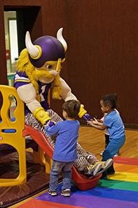 As special bonus, a dozen employees from the Minnesota Vikings showed up to spend an hour playing with preschool children enrolled in the West 7th Salvation Army’s Child Development Center, which provides quality, accredited childcare for low-income families.