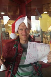 It’s just the latest in a growing list of Koosman stunts–all designed to inspire you to bell ring and support The Salvation Army.Koosman inside Cash Wise glass room of rotating door